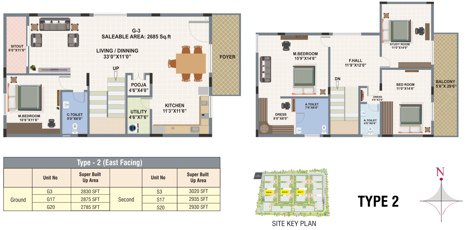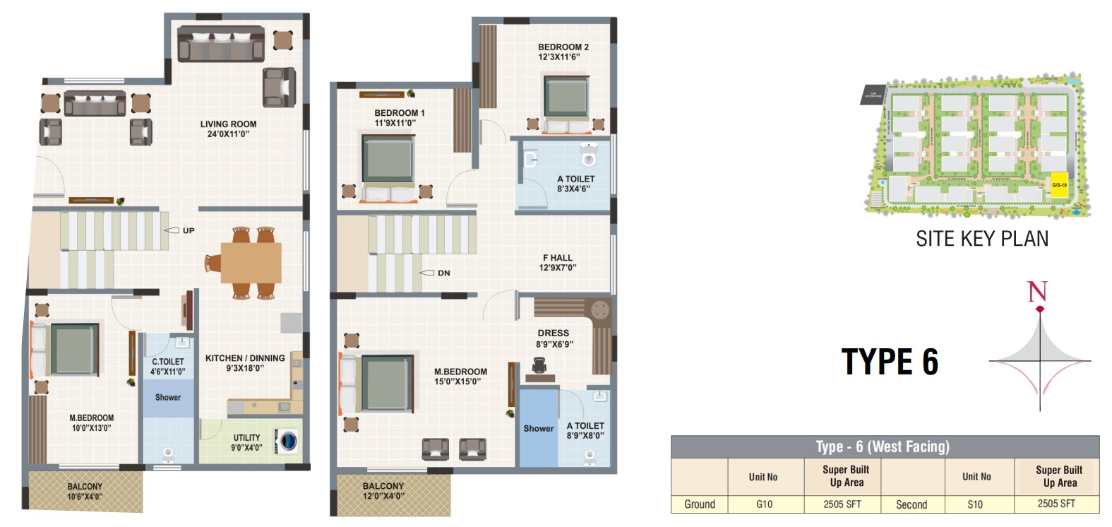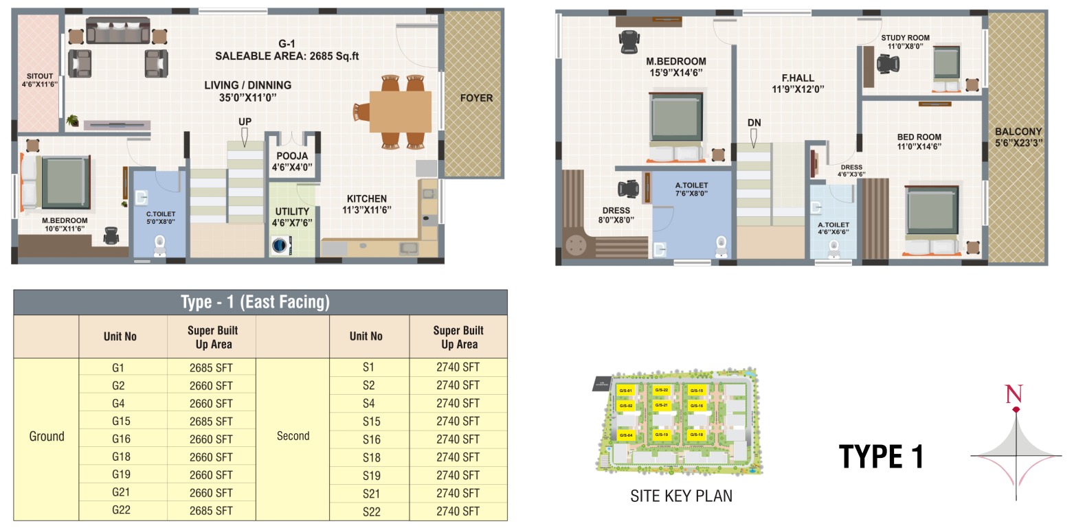 PSR Nandanam is conceptualized with a novel idea, which integrates the advantages of a villa and an apartment, both at one place!! This exclusive project has a series of 44 residences with 2 duplex villas, one above the other. PSR Nandanam is an embodiment of our passion for innovation through excellence and respect for your love of the good life.